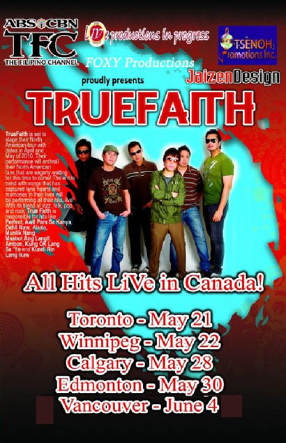 Watch Truefaith live in concert in Vancouver on Friday, June 04 & Saturday, June 05 2010 at the Stadium Club @ Edgewater Casino Downtown Vancouver. TrueFaith special guest performances include: Eros Agape, Vivian Ama, Exile Band and The Headcakes.